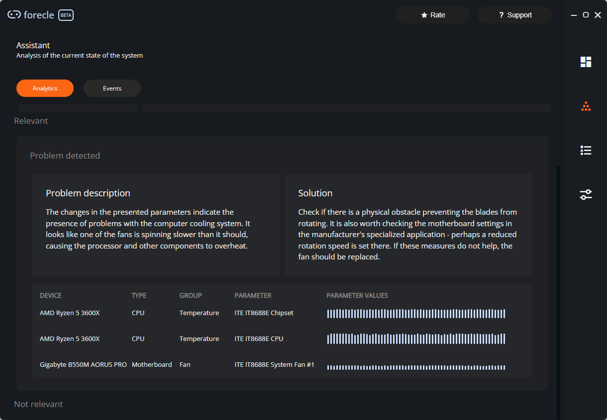 The built-in assistant will describe found problems and also warn if predicted changes could lead to computer malfunctions. For example, if a hard drive is about to fail or if the cooling system (fans) state could lead to computer overheating.